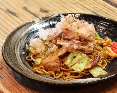 粉もんでありながら、粉っぽくなく冷めた後でもしっとり、もっちりとした食感と後味に旨味のある特製生地で焼き上げ、秘伝のソースで仕上げた「やき然」自慢の逸品。